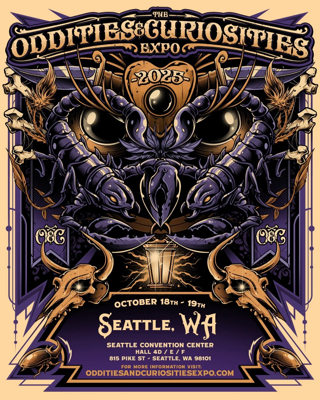 I’ll be a the premier oddities expo this weekend Saturday-Sunday October 18th and 19th. Visit https://odditiesandcuriositiesexpo.com for details and tickets!